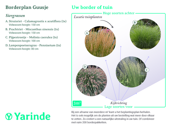Füllen Sie jetzt Ihre Löcher im Garten oder in der Grenze mit den fertigen Randpaketen von Yarinde.nl. Ihre Ziergräser werden in Ihren Garten geliefert.