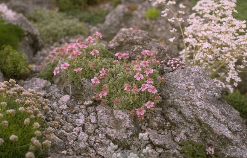 Die Blütenfarbe ist rosa und die Blütezeit dauert etwa von Juli bis August. Die Blätter dieser niedrig wachsenden Staude sind graugrün und etwa 5 cm groß. Bitte beachten Sie, dass diese Art schwer zu bekommen ist.
